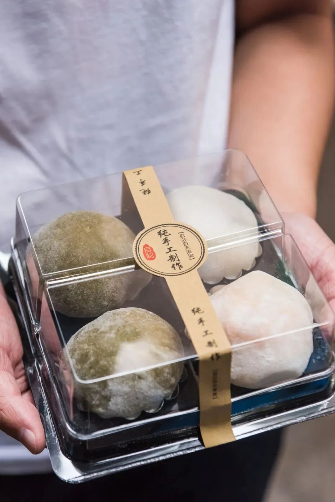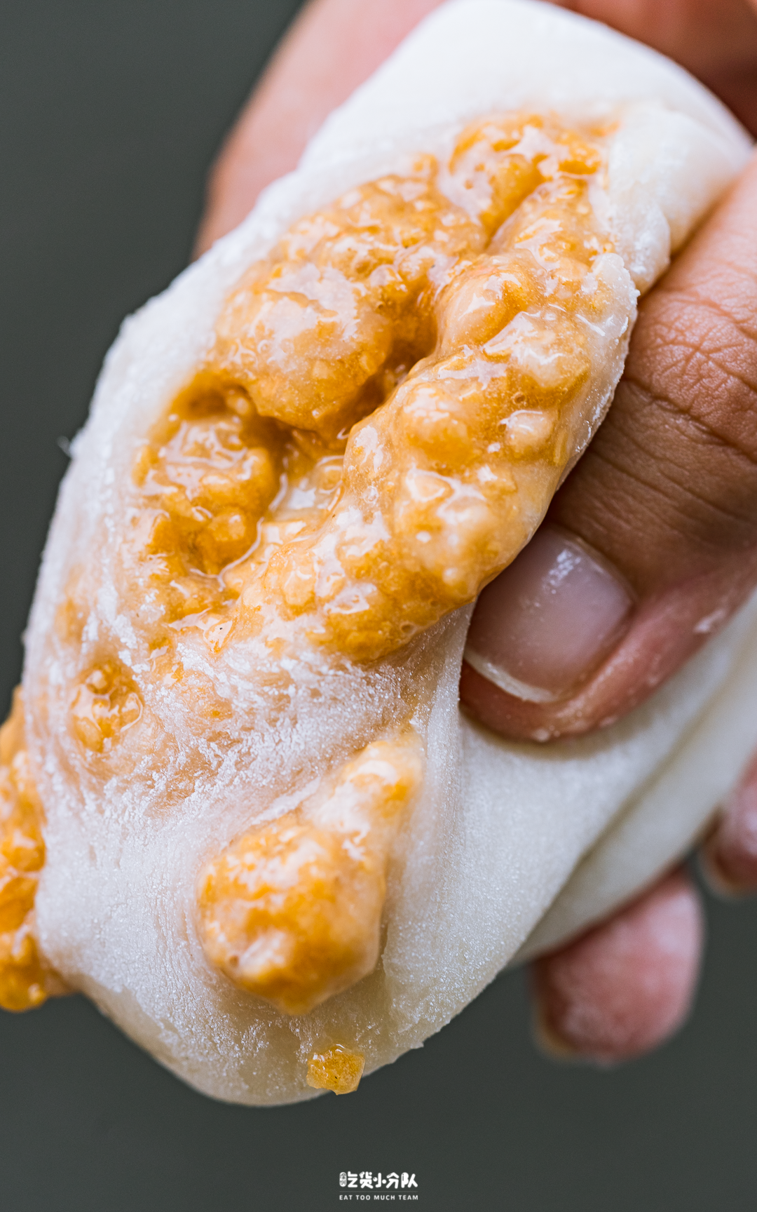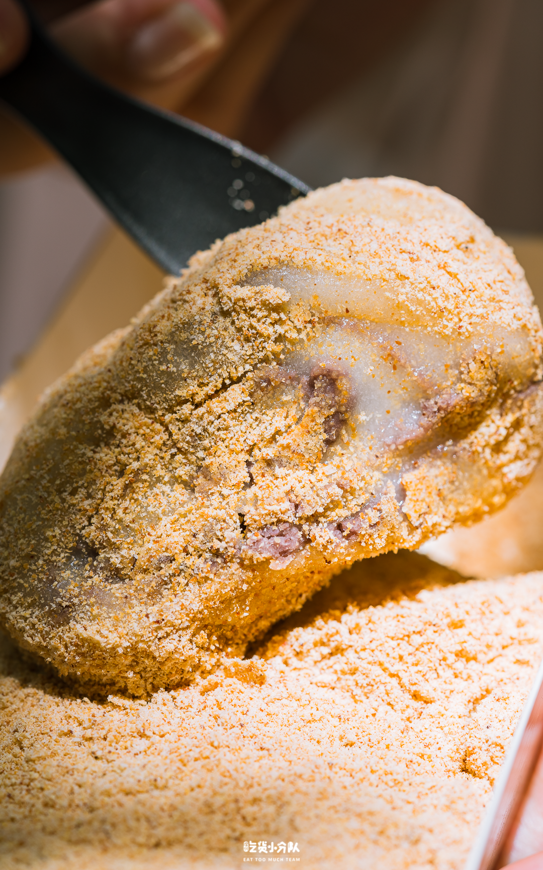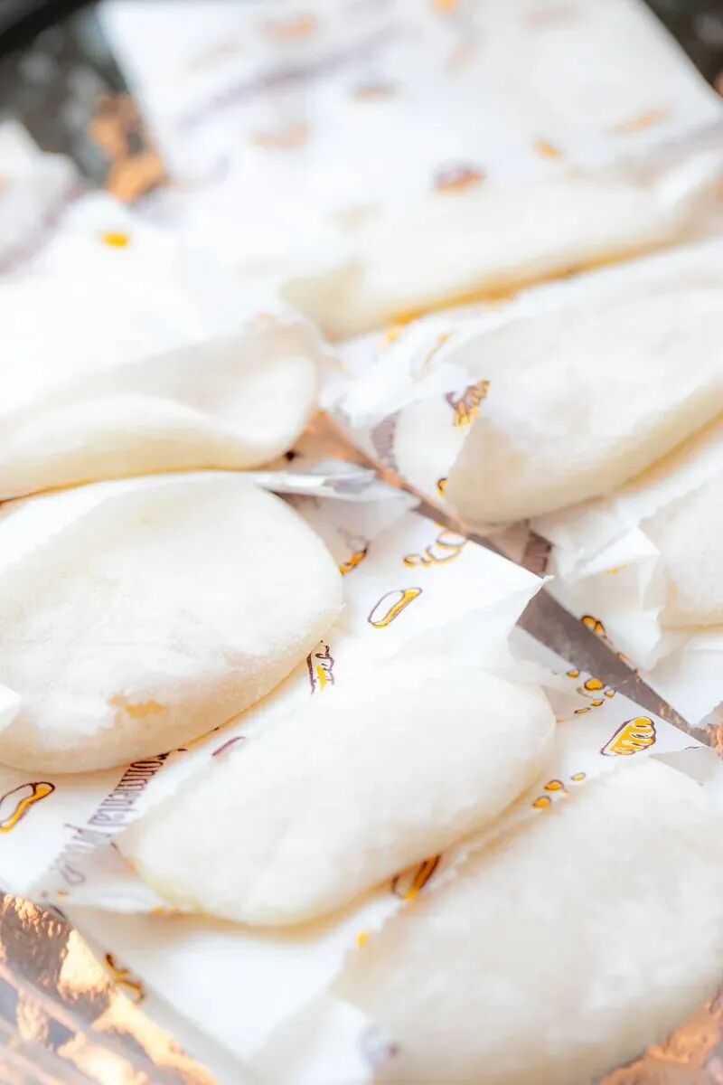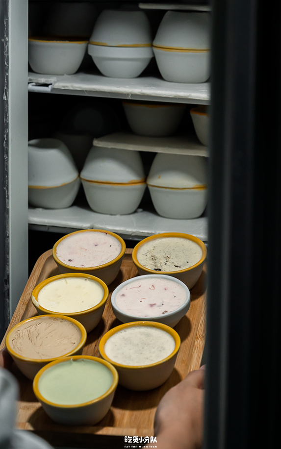 主打冰淇淋糯米糍。糯米打碎做成糯米糊,放牛奶小火加热,蒸熟放凉。趁着温热揉捏,目的是让糯米皮细腻有弹性,吃起来不粘牙。一个糯米皮装一钵雪糕,雪糕易融化,所以手速要把控好。挖出后,迅速放在展开好的糯米皮上,包好再均匀沾上糯米粉,保持表面干爽。店里有40多款口味,卖最好的就是海盐奥利奥口味,融化速度略快,到手尽快吃。冰淇淋的口感绵密,奥利奥颗粒清晰,加了海盐整体不会过于甜腻。
