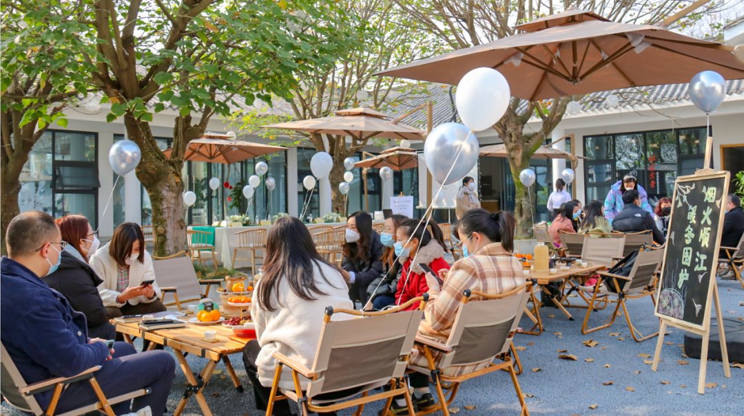 随着“公园里的家”共享服务空间的开放,越来越多的居民在这里喝网红茶、看展看表演、上茶艺书法课程、体验露营乐趣、逐渐形成邻里共享,文化交流的特色社区新消费场景。