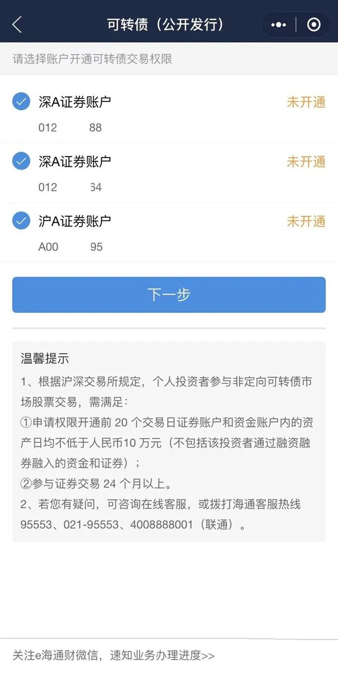 每当提及可转债大家可能既熟悉又陌生。说熟悉是因为作为A股稀缺的T+0交易品种在日常投资中一直扮演着重要角色。说陌生可能也是因为T+0交易,往往投资者会选择“一日游”甚至“半日游”,导致大家对于可转债的持续跟踪不够,没有能够正视可转债带来的长效收益。下面我们通过一些数据来看一看,坚持参与可转债投资的效果如何?11月截至15日,可转债等权指数上涨3.4%,看起来不如恒生指数11月涨幅24.89%,但2022年至今恒生指数下跌21.6%,而可转债等权指数今年仅微跌1.77%,足以体现出可转债“下有保底”的抗跌性。2018年至今,可转债等权指数累计涨幅高达103.67%,而同期恒生指数却跌了38.69%。10月31日至11月15日,可转债中位数价格已经从118元回升至123元,平均价格也从130.7元回升至134.7元;与前期8月相比,中位数最高到过131元,平均价格也到过接近150元。11月17日,可转债中位数价格再次下探118元,可以说目前位置的可转债具备一定的投资价值,如果到115元以下,则投资价值将更高。(数据来源:集思录)另外,自8月1日新规实施以来,可转债的日交易量从上半年最高的2000亿降到过359亿每日,但近期可转债日成交额回升至765亿左右,说明也有不少资金看到了目前行情下可转债特有的投资价值。2022年最后一个半月,建议关注低价、低溢价率、剩余规模较低的三低可转债。如果可转债中位数如果有机会回落至120元以下,三低转债投资价值将更加突显。另外值得一提的是,在可转债打新方面,今年已上市128只新债无一破发,目前还有13只转债待上市。由于近期打新人数依旧维持在千万人左右,打新中签率依旧很低,因此继续建议全家一起坚持打新债的策略。说了这么多可转债交易的可圈可点之处,那么可转债交易权限该如何开通呢?新开通可转债权限需要2年交易经验+账户20日日均资产达到10万元。另外,如果用户在A券商已经有了2年交易经验,换券商B开通权限无需再等2年,交易经验全市场通用。打开e海通财APP-进入【我的】-【业务办理】-【权限管理】-【可转债(公开发行)】,根据提示开通即可开通可转债交易权限后,直接选择心仪的可转债买入卖出即可,操作方法与股票一致。免责声明:市场有风险,投资需谨慎。本文所载内容仅供海通证券股份有限公司的客户参考使用,客户须自主做出判断和投资决策。如本内容为海通研究所发布的报告摘要,则仅为其研报观点的简要表述,客户仍需以海通正式发布的完整报告和专业的投资顾问的解读为准。