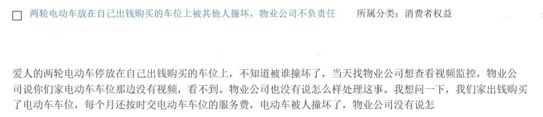 我爱人的两轮电动车停放在自己出钱购买的车位上,不知道被谁撞坏了,当天找物业公司想查看公共视频,物业公司说我们家电动车车位那边没有视频,看不到。物业公司也没有说怎么样处理这件事。我想问一下,我们家出钱购买了电动车车位,每个月还按时交电动车车位的服务费,电动车被人撞坏了,我们应该怎么办?
