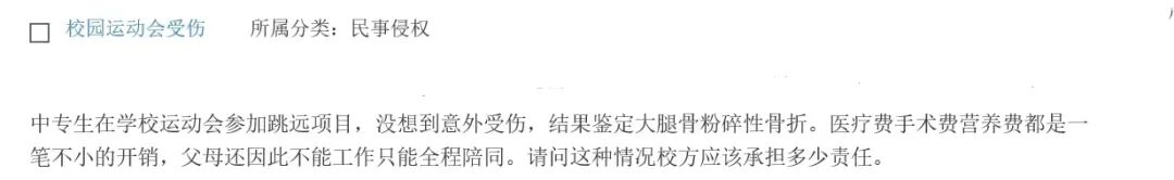 中专生年龄一般在15-18周岁,属于限制民事行为能力人。《民法典》规定,限制民事行为能力人在学校或者其他教育机构学习、生活期间受到人身损害,学校或者其他教育机构未尽到教育、管理职责的,应当承担侵权责任。中专生在校期间,学校对学生负有教育、管理义务。学生在校运动会跳高时受伤,学校是管理者和组织者,在组织学生参加运动会时应当充分尽到注意义务以保障参与活动学生的人身安全。根据你的陈述,学生受伤系因为参加运动会跳远项目摔倒所致,中专学校在组织学生参加运动会过程中如果未能充分尽到教育、管理职责,比如现场未设置保护设施等等,同时也没有其他证据证实学生在自己受伤过程中存在明显过失,那么学校应当承担赔偿责任。如果学校尽到了教育、管理职责,或者学生对于事故发生存在明显过错,则应当减轻或者免除学校的责任。