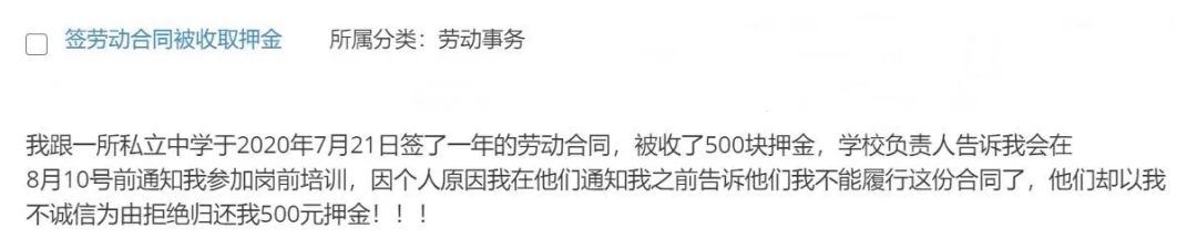我跟一所私立中学于2020年7月21日签了一年的劳动合同,被收了500块押金,学校负责人告诉我会在8月10号前通知我参加岗前培训。因个人原因,我在他们通知我之前告诉他们我不能履行这份合同了,他们却以我不诚信为由,拒绝归还我500元押金。我该怎么办?A4: