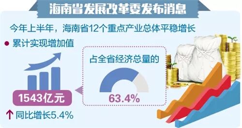 海南:上半年12个重点产业同比增长5.4%