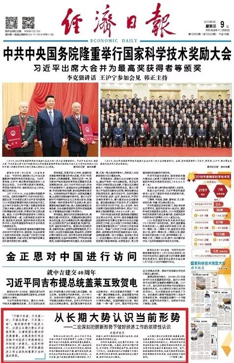 前不久,中央经济工作会议对经济形势作出一系列重要战略判断。从长期大势看,我国发展拥有足够的韧性、巨大的潜力,经济长期向好的态势不会改变;面对世界百年未有之大变局,我国发展仍处于并将长期处于重要战略机遇期,变局中危和机同生并存,这给中华民族伟大复兴带来重大机遇。从当前形势看,经济运行稳中有变、变中有忧,外部环境复杂严峻,经济面临下行压力。