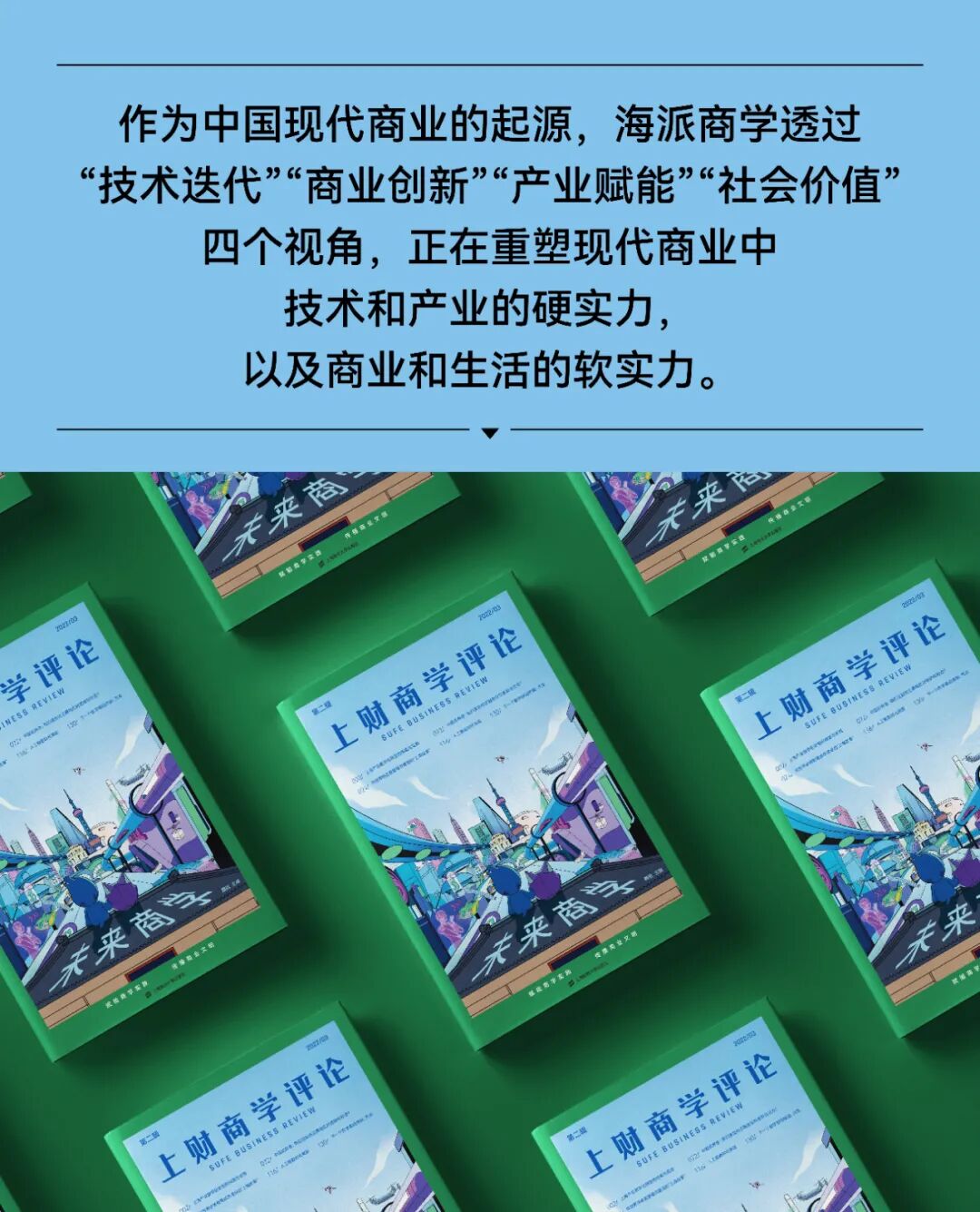 作为中国现代商业的起源,海派商学透过技术迭代、商业创新、产业赋能、社会价值四个视角,正在重塑现代商业中技术和产业的硬实力,以及商业和生活的软实力。我们分别选取了具有代表性的城市,深入海派商学的历史内涵和创新外延,发掘商学教育下一个百年提升的着力点,探讨商业与城市共生及可持续发展的路径。