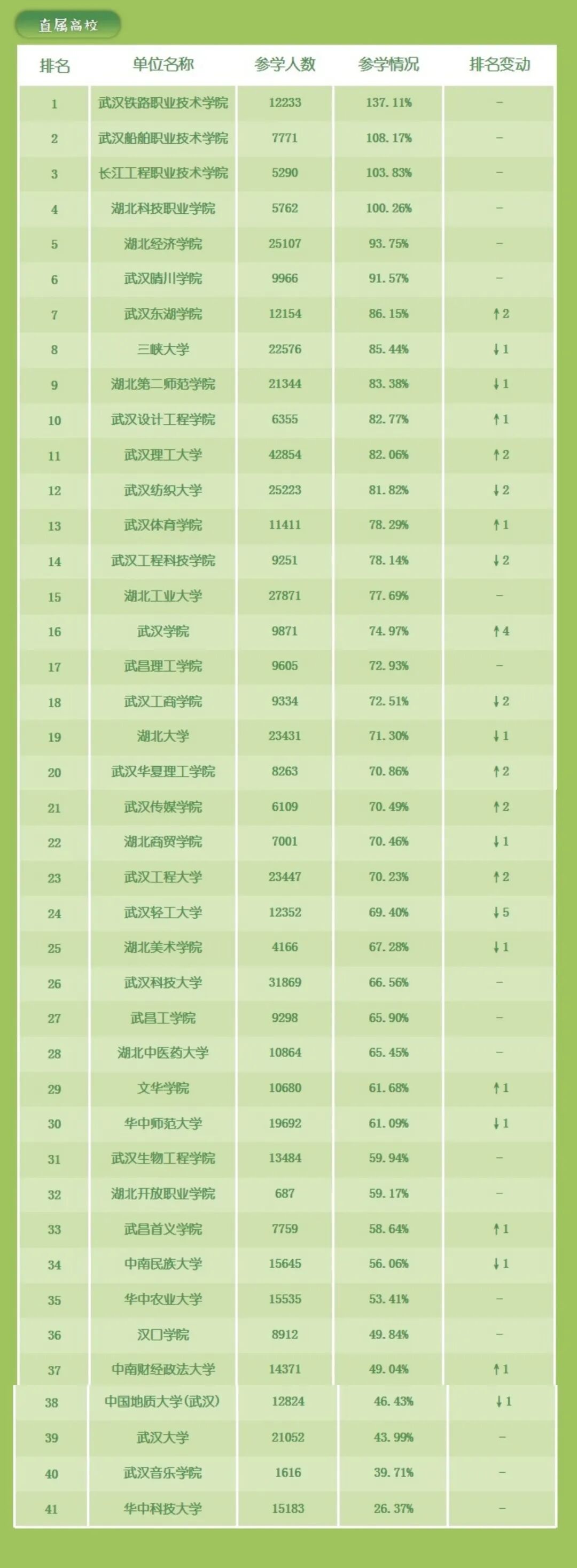 武汉铁路职业技术学院、武汉船舶职业技术学院、长江工程职业技术学院、湖北科技职业学院