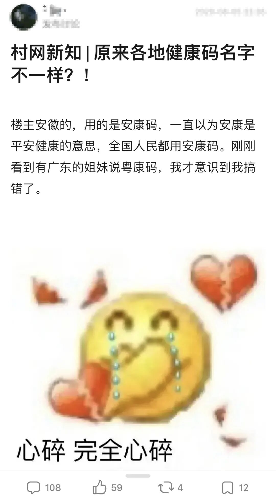 比如,有天真的安徽网友本来以为全国都叫“安康码”,但她的广东姐妹早就看透了一切。