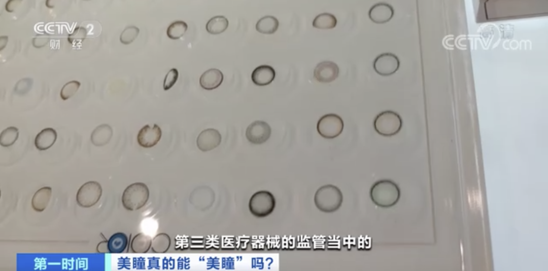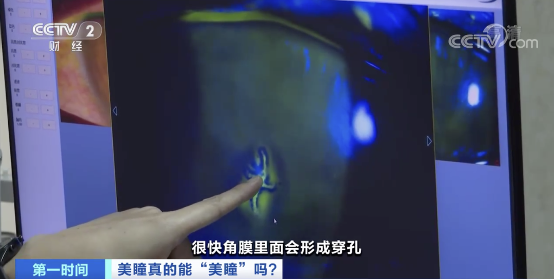 福建福州市第一医院眼科主任 陈占彪:有一些伪劣的美瞳,是色素直接染色在上面,戴在眼睛上角膜都会被染色的。