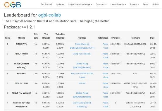 据了解,10月16日,学校计算机学院张宇副教授主导的图计算团队自主研发的新型图学习模型GIDN,在2022年国际开放图基准数据集OGB (Open Graph Benchmark) 挑战赛的链接属性预测赛道中——