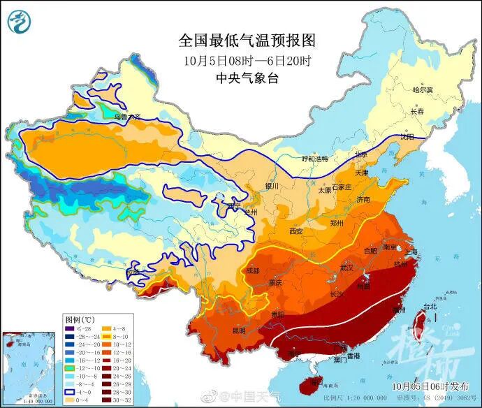 眼下,冷空气还在继续南下的过程中,预计江南大部华南北部等局地降温可达8℃以上。中央气象台10月5日06时继续发布寒潮蓝色预警,受强冷空气影响,预计5日08时至6日20时,江南大部、西南地区东部、华南北部、青海北部和东部等地部分地区将先后降温4~6℃,局地降温幅度可达8℃以上。最低气温0℃线将位于华北北部至辽宁中部一带,最低气温10℃线将位于四川东北部、湖北南部、河南南部至苏皖北部一带。