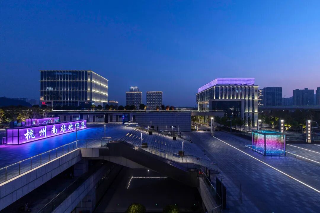本次亮化主要是对杭州南站东、西广场面积约13.6万平方米范围,以及商城路、柳桥路、站前路等长度约1470米道路和两侧住宅、商业、写字楼共38幢建筑、景观实施亮化提升。
