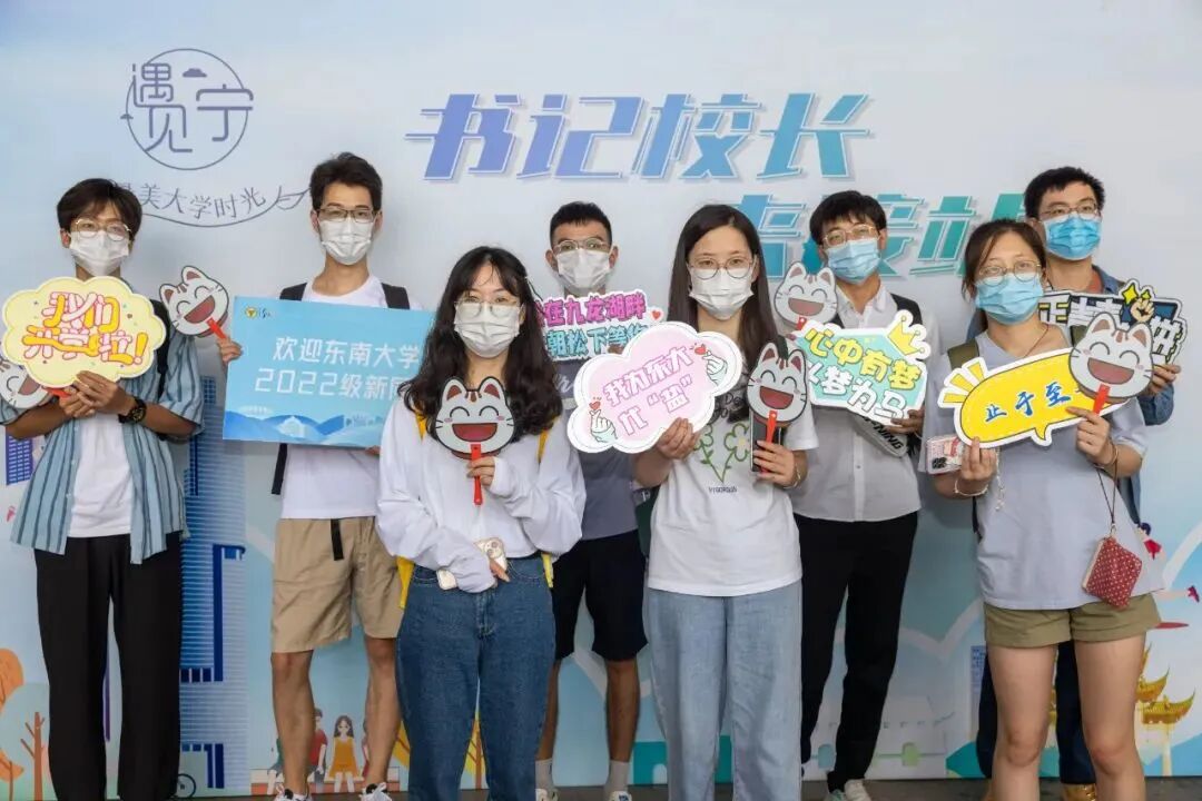 背着双肩包、拖着行李箱,刚下高铁的萌新们满脸的兴奋和好奇。踏上红地毯,穿过城门,遇见了东南大学热情的欢迎,遇见了学校领导亲切的关怀。微笑,留影,签名......青春与梦想在南京绽放,在东大绽放。
