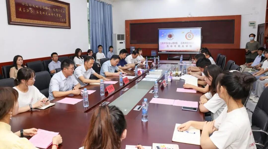 座谈会上,梅国平校长讲话。他称赞阳光学校是了不起的学校,是党和政府以及社会把阳光普照问题少年的专门教育学校。南昌市阳光学校是江西师大教学实践基地,我校已专注教育矫正工作13年,参与矫正率达90%以上,取得了不错的社会效果。他勉励实践队员,在实践中了解社会、了解国情、深入社会、奉献社会,把社会实践作为“接地气”的重要环节;在实践中增长才干、练就本领,不断提高运用专业知识的能力,加强组织协调,提高个人素养,锤炼意志品质。他还以习近平总书记年轻时在梁家河“过五关”人生经历激励大家,希望实践队员克服困难,团结协作,在阳光学校搭建“用爱传递温暖”的桥梁,为人生留下宝贵的精神财富。