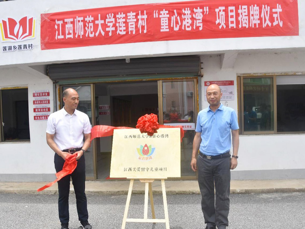 在鄱阳县莲湖乡,物理与通信电子学院“七彩课堂共筑中国梦,童心向党喜迎二十大”社会实践活动正在进行。陈义旺与鄱阳县县委副书记、副县长王东一起为莲青村“童心港湾”项目揭牌,将一批教育物资捐赠给当地留守儿童,并向相关负责人员询问童伴妈妈的聘用、留守儿童关爱活动等基本情况,要求各方面积极整合资源、加大投入力度,依托暑期“三下乡”社会实践服务等载体,形成长效机制,持续推动“童心港湾”项目做实做细做出实效。