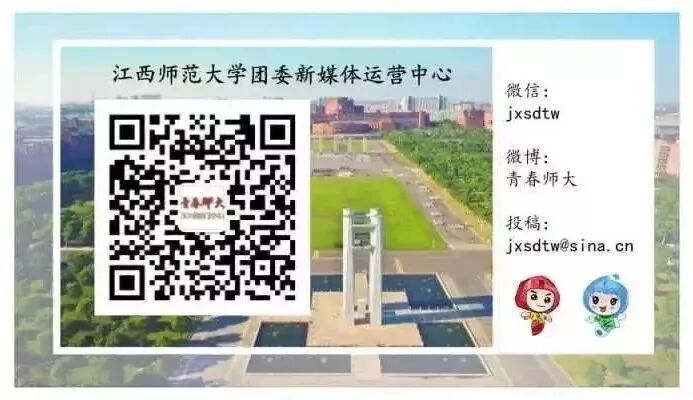 功能介绍 江西师范大学团委官方公众号——我们提供最及时的各类通知,发布最实用的校园资讯,还有最好玩的校园新鲜事和激动人心的定期福利。我们的宗旨:做一个有爱的官微~