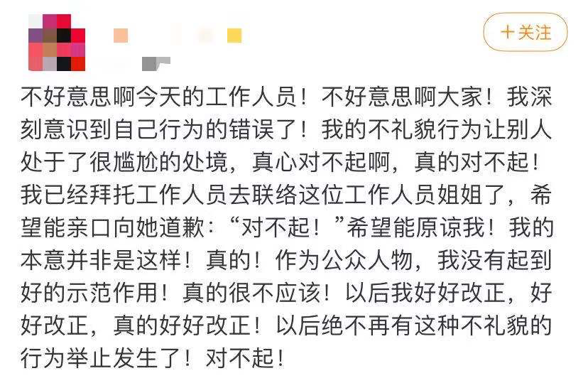 5月17日,一男艺人为看到工作人员摔倒大笑道歉