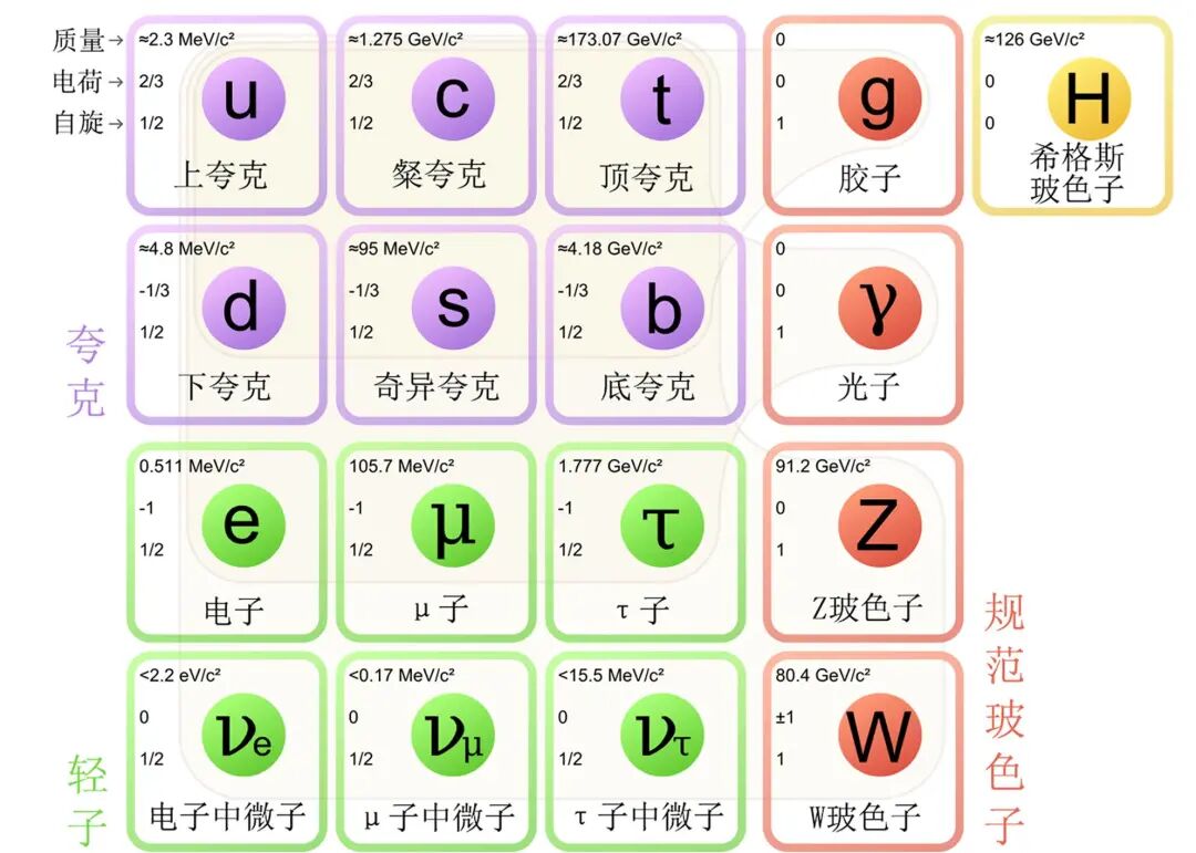 宇宙中有12种已知的基本粒子。每一个都有自己独特的量子场。对于这12个粒子场,标准模型还加入了四种力场来表示四种基本力:引力、电磁力、强相互作用和弱相互作用。它将这16个场写入一个可以描述它们如何相互作用方程中。通过这些相互作用,基本粒子被理解为各自量子场的涨落——物理世界于是出现在我们眼前。