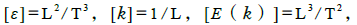 我现在用量纲分析方法来证明这个公式:因为E(k)只与k 和ε 有关,ε=dυ2/dt 为单位质量的能量输入速率,而从这些量的量纲看, 速度v 的量纲是[ v ] =L/T, 其他量的量纲: