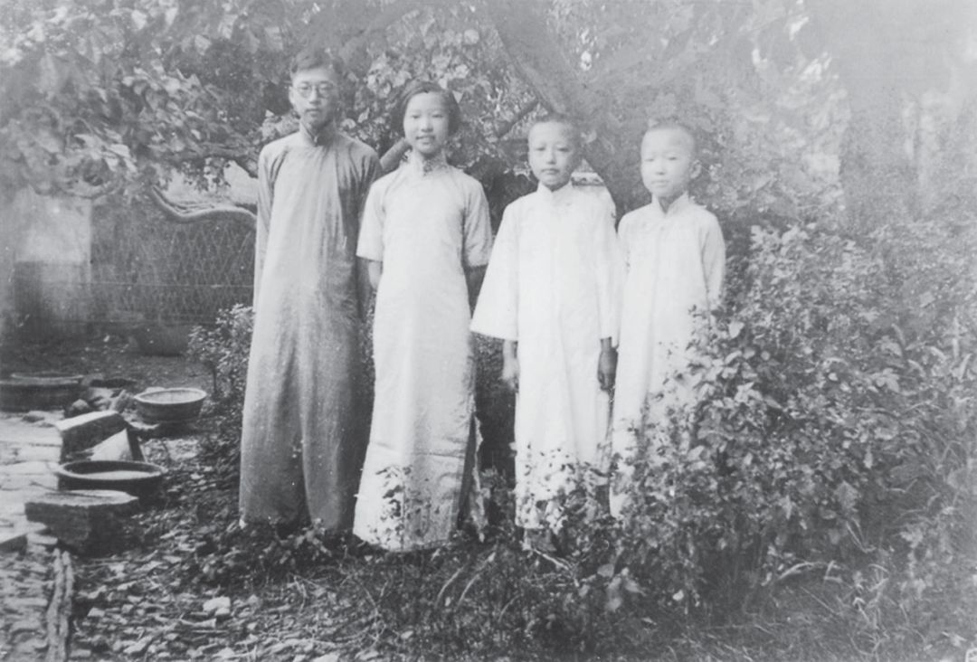 图1 1933 年,冯端与兄姐于苏州家中后院合影(左起:冯焕、冯慧、冯康、冯端 )