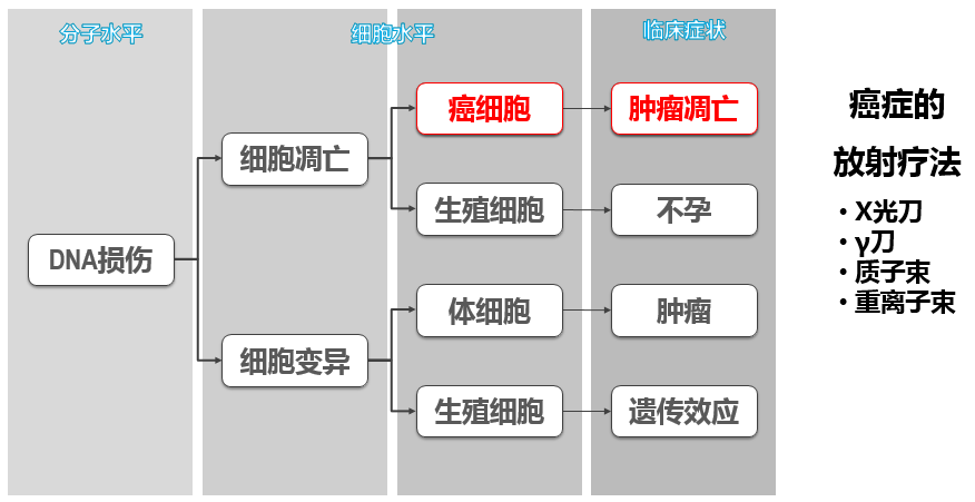除了诊断外还可用核技术进行治疗。治疗主要是通过X光、伽马光、质子束、重离子束等等,这些射线作用在病灶上,像癌细胞、肿瘤等,来达到杀死癌细胞的一个效果。质子和重离子束的治疗,它们在组织内可以非常精准地作用在我们所需要的深度,来进行对癌细胞、肿瘤细胞精准的杀死。