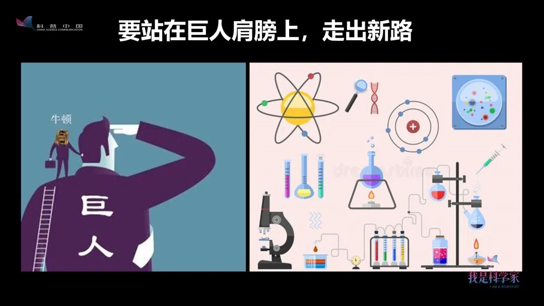 从古到今,包括牛顿和爱因斯坦,我们都是站在巨人的肩膀上,沿着他们走过的路走来。我们学习他们走过的路,但要晓得,要走出未来自己的路。