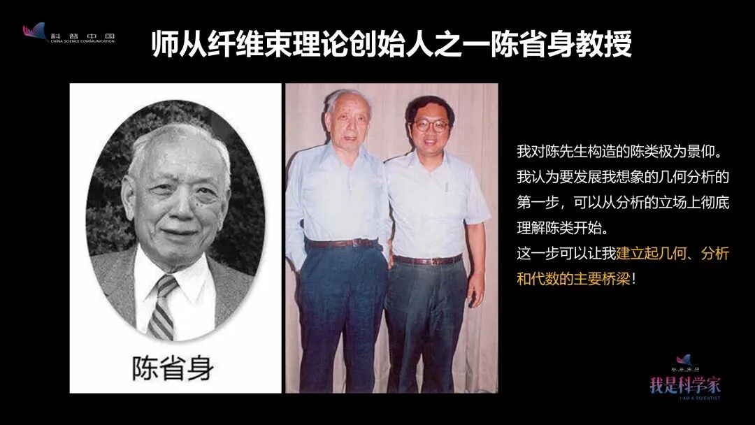 我的导师是当时最伟大的几何学家陈省身先生,他是“纤维束理论”的创始人之一。纤维束理论后来成为了高能物理最重要的研究基础,现在还影响到了凝聚态物理。可以说,所有的物理都跟纤维束理论有关。