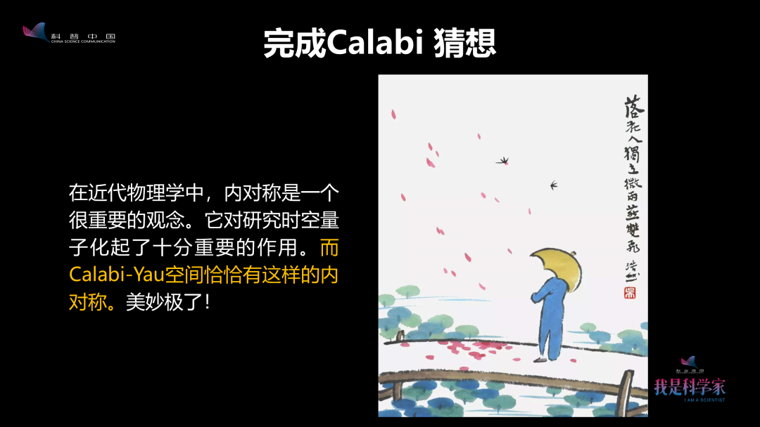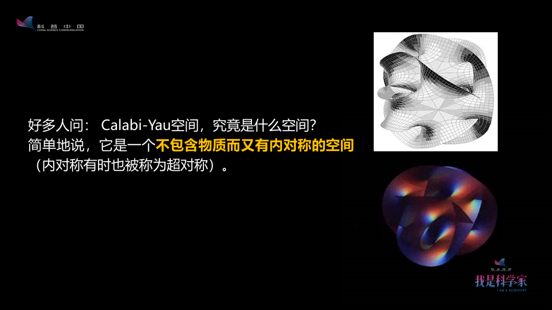 卡拉比-丘(Calabi-Yau)空间自成为一门很重要的学问,已经发展四十年了。直到现在,还有很多物理、数学、数论、几何领域的重要学问围绕着这个空间。