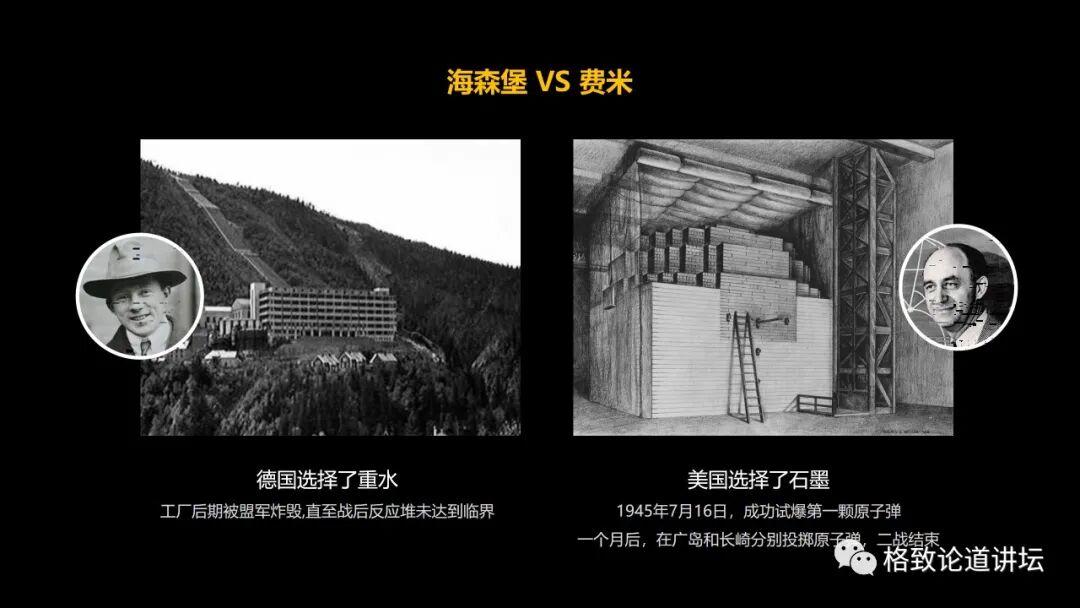 德国选择了重水,但是碳是更容易获得的,美国的第一个反应堆是由大科学家费米建造的,他用石墨作为慢化剂。