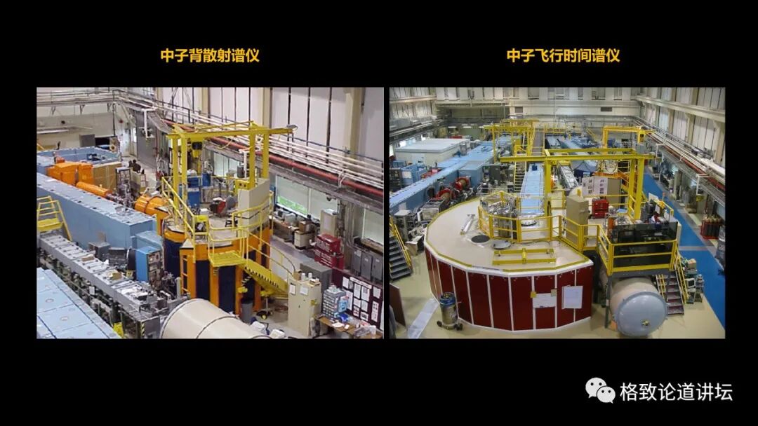 我们做了一系列的中子散射实验,如图所示,这是我当时在美国做实验用的两种不同的谱仪,非常庞大。