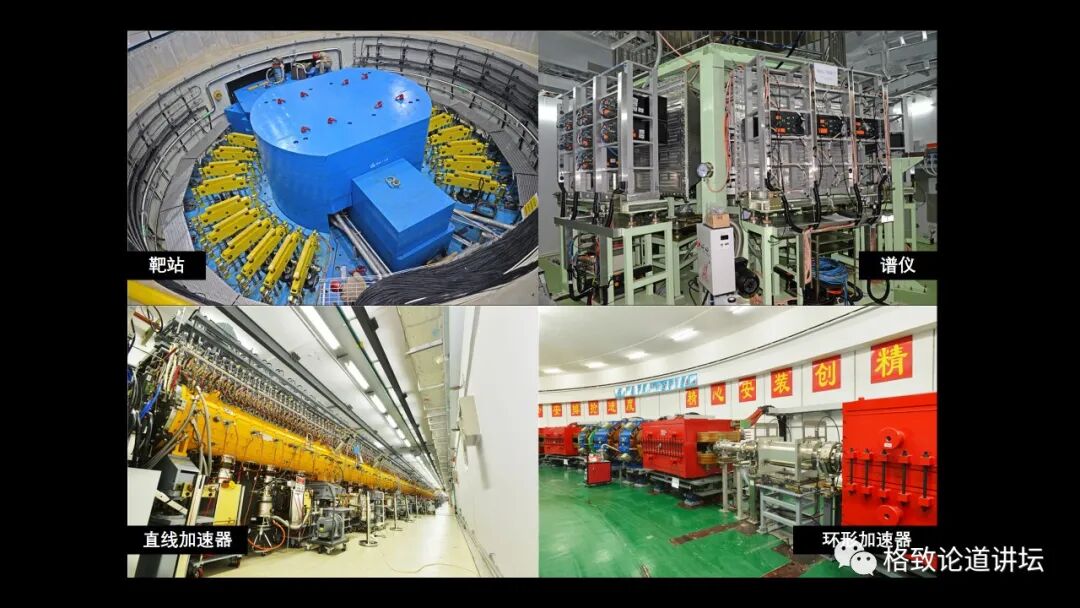 散裂中子源是大国重器,占地很大,它的内部是这样的。下面的两张照片是加速器,还有一个重要的装置叫做谱仪(见上图)。