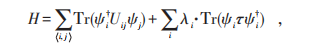 自旋模型中的局域规范对称性正是来源于哈伯德模型中的全局电荷SU(2)对称性。在大U 极限下,电荷自由度被完全冻结,作用于电荷自由度的SU(2)操作对系统波函数不再产生影响。也就是说,在半满和单占据条件下,费米子波函数在局域的电荷SU(2)变换下保持不变。因此,电荷的SU(2)全局对称性退化为局域的SU(2)规范对称性。无自旋轨道耦合的量子自旋液体的平均场哈密顿量是[14]: