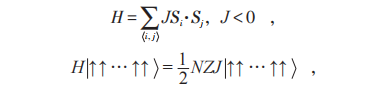 中,相互作用的能量是 -1/4 J,但是在上面的自旋单态中,相互作用的能量是 -3/4 J,也就是说,量子相干叠加效应使得基态能量比经典基态的能量降低了200%!这个自旋单态中,两个自旋的状态发生了最大的纠缠(图1(c))。如果对其中一个自旋的状态进行测量,则其自旋指向沿着任意方向都是等概率出现的,充分体现了“磁无序”的特点。自旋量子数越大,量子效应对能量的修正越小。比如当S=1时,量子效应对两体基态能量的修正为100%。