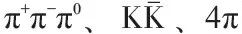 在 2.0 GeV 以下,对强真空极化贡献最大的两个过程是3π和4π过程,BESIII实验通过初态辐射方式分别对e+e-→π+π-π0 [11]和π+π-π0π0过程进行了研究,得出在主要能区其对缪子反常磁矩的贡献为和
