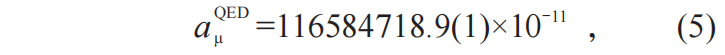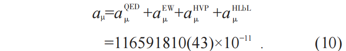 将以上贡献相加,我们得到标准模型框架下缪子反常磁矩的理论计算值[2]: