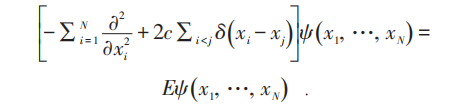 在 文 章 “Some Exact Results for the Many-body Problem in One Dimension With Repulsive Delta-Function Interaction”(Phys. Rev. Lett.,1967,19:1312)和“Thermodynamics of a One-Dimensional System of Bosons with Repulsive Delta-Function Interaction”(J. Math. Phys.,1969,10:1115)中,考虑一维硬核(hard core)模型(c >0):