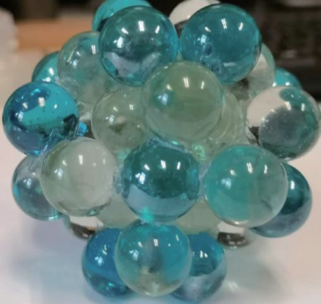 图2 由玻璃珠搭建的α晶状体聚集体的结构模型。蓝色玻璃球代表αB单体,透明玻璃球代表αA单体