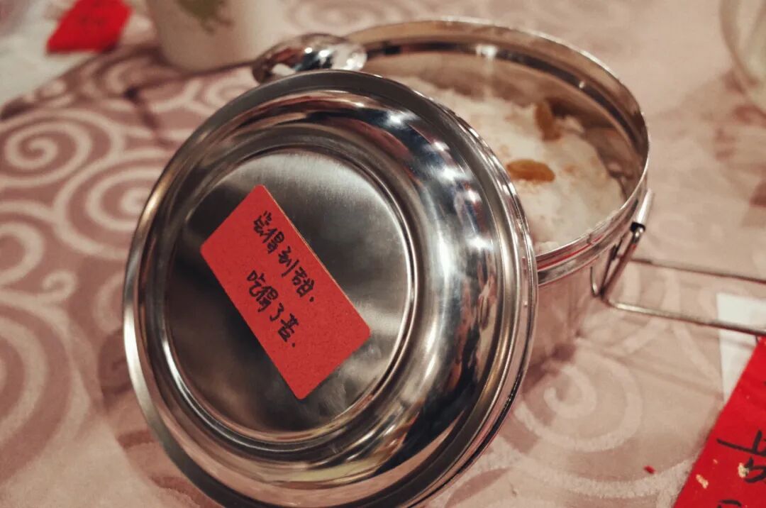 为了让每个人都能拥有一份属于自己的芋泥,我提供了各种各样的配料,包括葡萄干、桂花、红枣、山楂,甚至还有盐。最后大家还挑了不同的标签贴在了饭盒上。