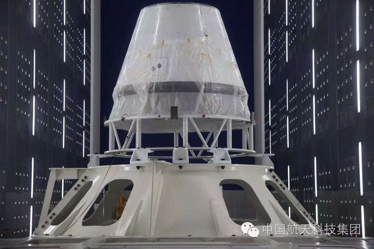 不同于它的神舟飞船先辈们“钟罩式”的外形,多用途飞船缩比返回舱呈倒锥形,更像是一颗“子弹”。