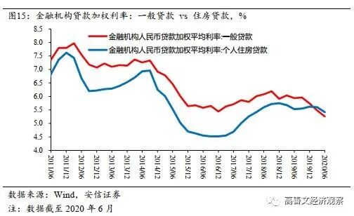 今年2月新冠疫情爆发以来,中国社会融资增速出现了井喷式的上升,与此同时,信贷市场利率持续下行。如图15所示,今年2季度,一般贷款加权利率已经低于个人住房贷款的按揭利率,这种情况是不多见的。这反映在政策推动下,金融机构加大了对实体经济活动的支持。