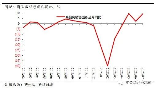 在宽松的信贷环境下,今年股市整体表现积极,自不待言。我们进一步观察房地产市场。如图16所示,今年2月以来,信贷出现井喷,3月份开始商品房销售出现强劲恢复,最近三个月商品房销售面积增速稳定在比疫情前明显更高的水平。