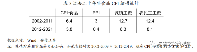 如果进一步考虑到在2012-2021年的后十年中,大多数产品价格的涨幅都明显下降,经济增速也显著更慢,那么核心通货膨胀的上升就更为突兀,值得认真思考。