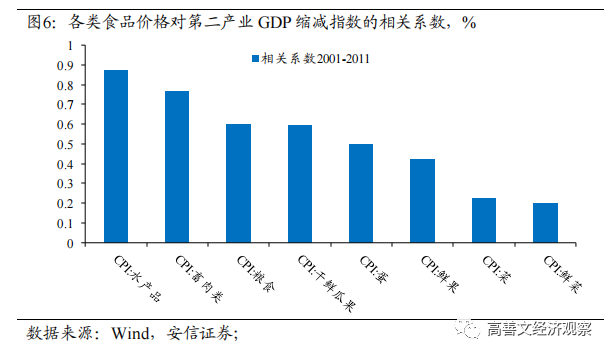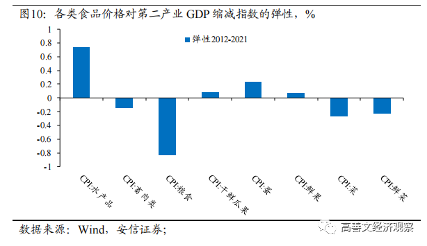 还可以进一步观察这些产品的价格与工业品价格的弹性。