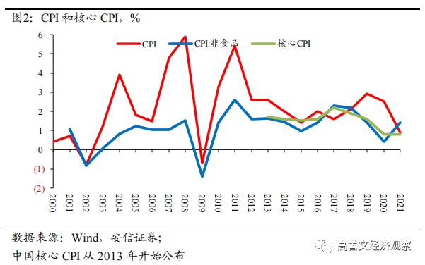 同时,如在表1所显示的那样,在2012年到2021年期间,CPI累计上升了22.6%。其中60%的贡献来自于食品,食品的贡献率从前十年的97%下降到60%,仍然是最大的涨价因素,但影响显著下降。