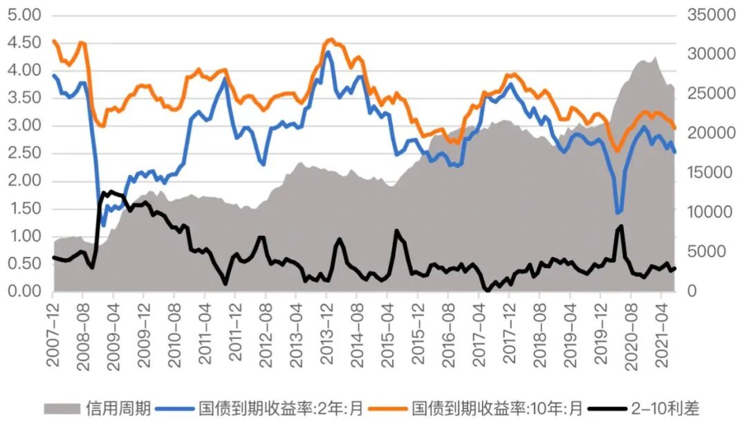(2)此后,随着信用扩张正式到来,利率水平会逐渐上升,前期快速陡峭化的曲线也会逐渐变平。