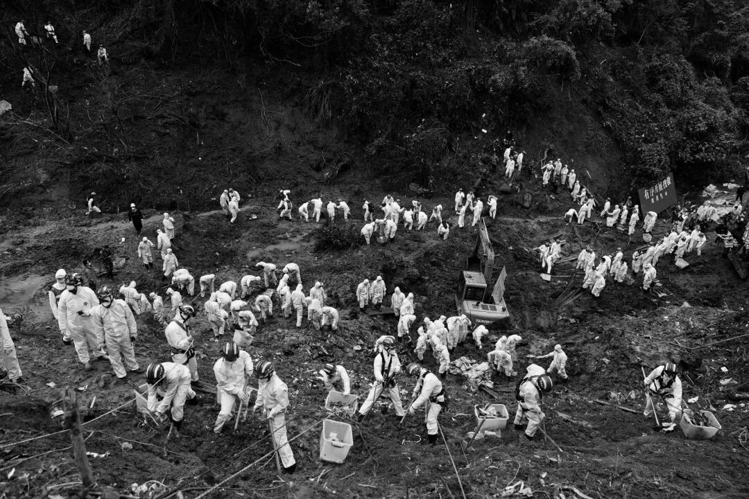 “遍地都是残骸,不敢拉近拍,也没敢乱看。”白天,我与所有救援人员共进退,爬过最陡峭的山坡,走过最泥泞的道路,穿过最荆棘的山林,用一部手机、一台微单、一个运动相机记录下了搜救人员争分夺秒的身影。