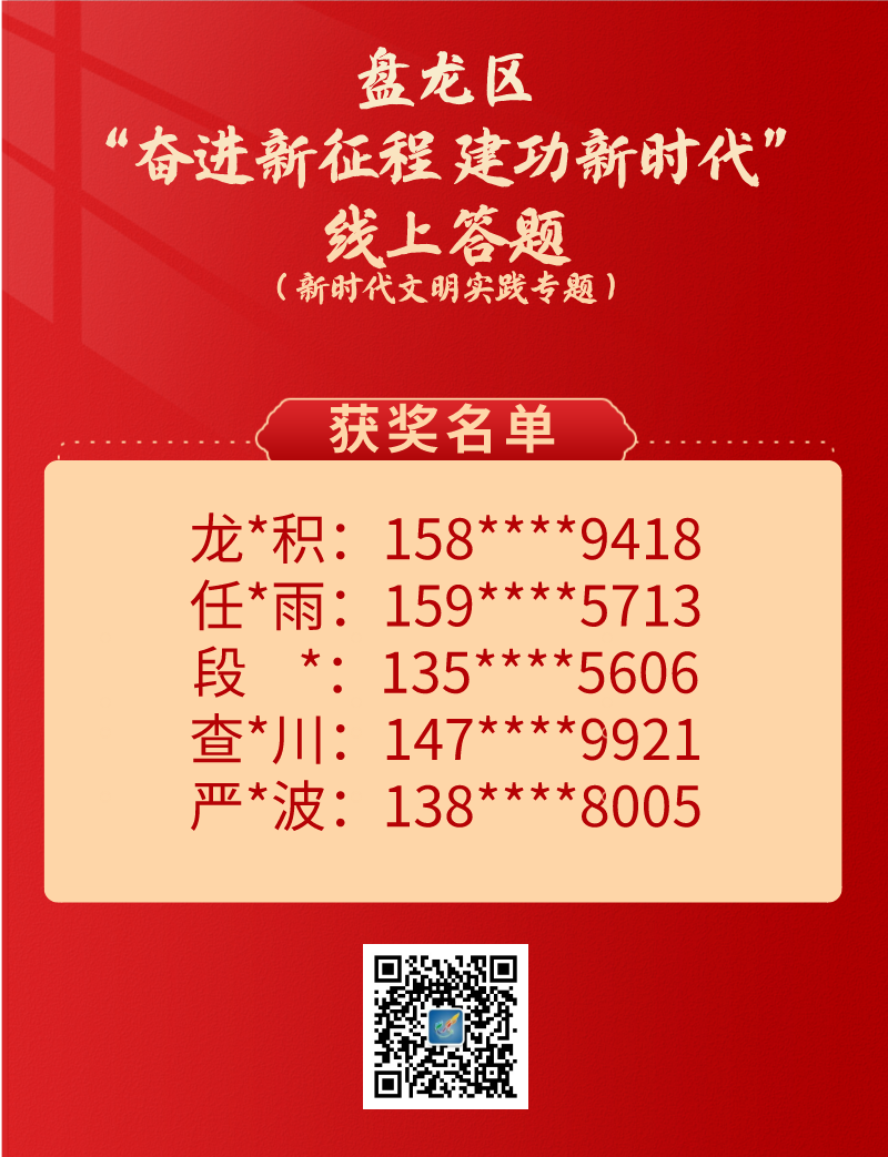 2022年6月1日起,中共昆明市盘龙区委宣传部、中共昆明市盘龙区委网信办、昆明市盘龙区融媒体中心与昆明信息港联合推出的盘龙区“奋进新征程 建功新时代”线上答题在“微观盘龙”微信公众号正式上线(点击链接查看活动详情:答题抽盲盒,盘龙向你发出邀请~)。