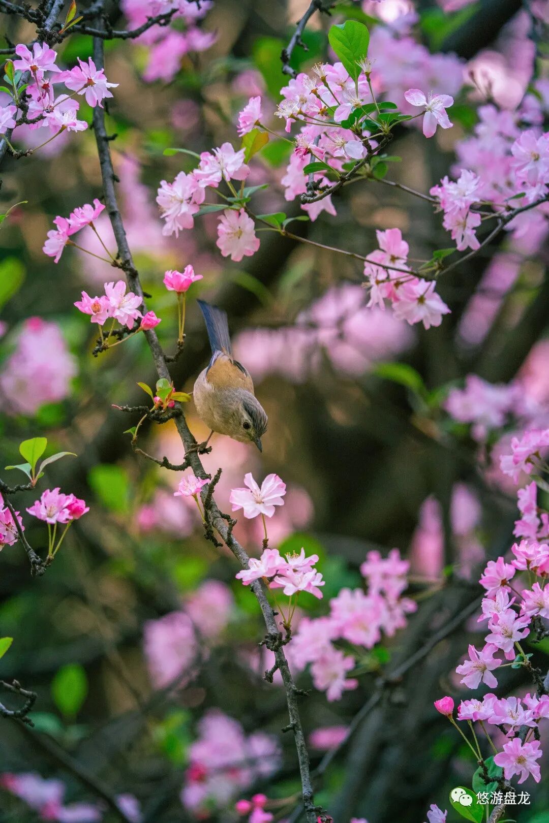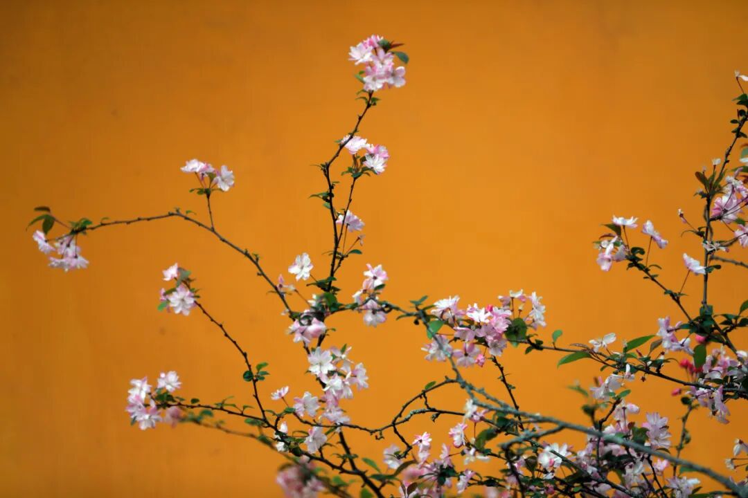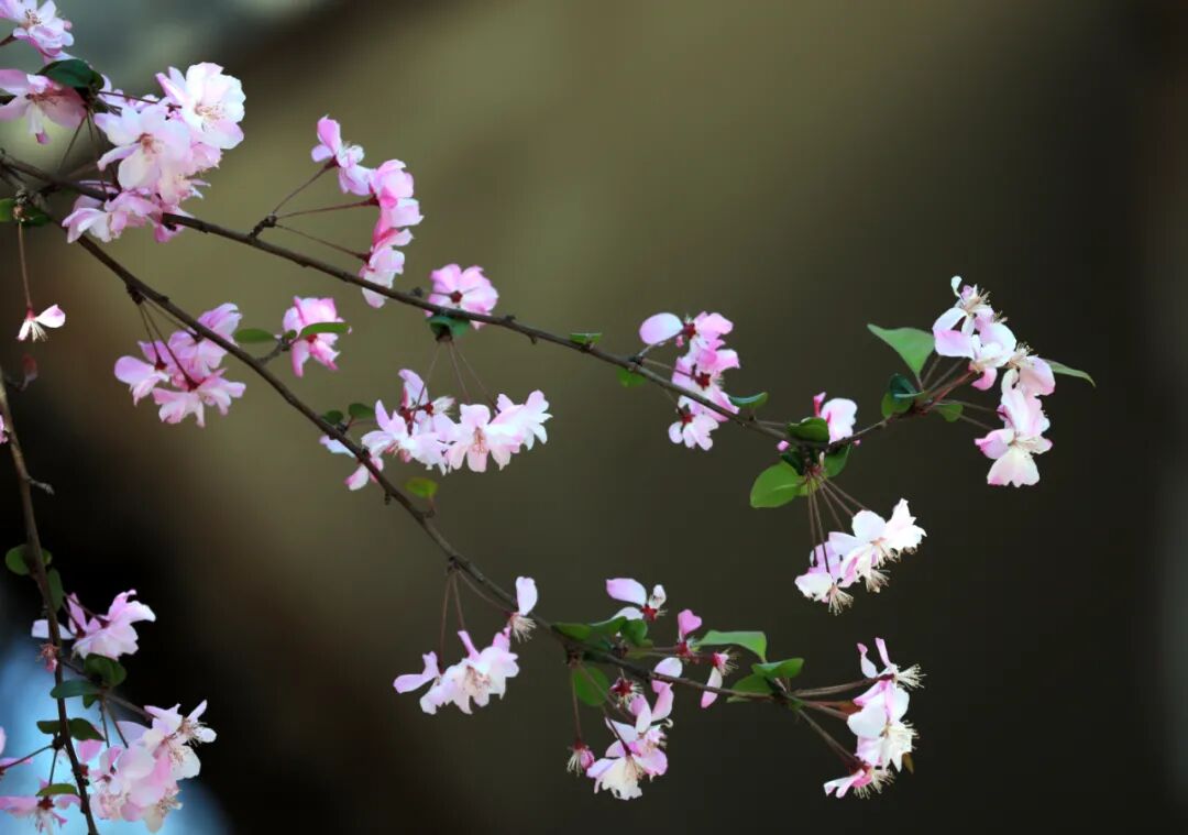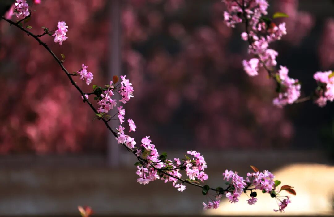 小心翼翼地包裹着玫瑰色的海棠花蕾