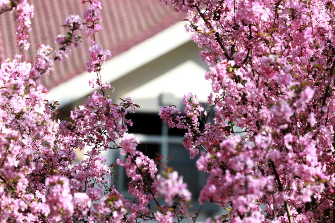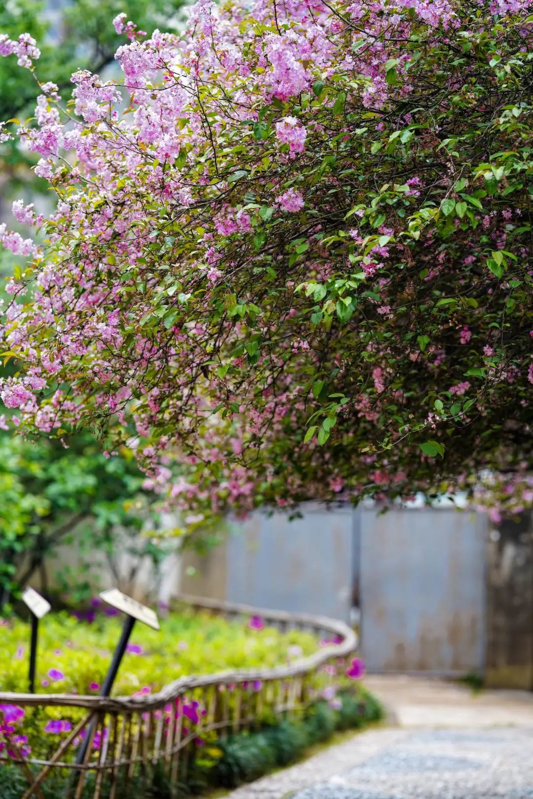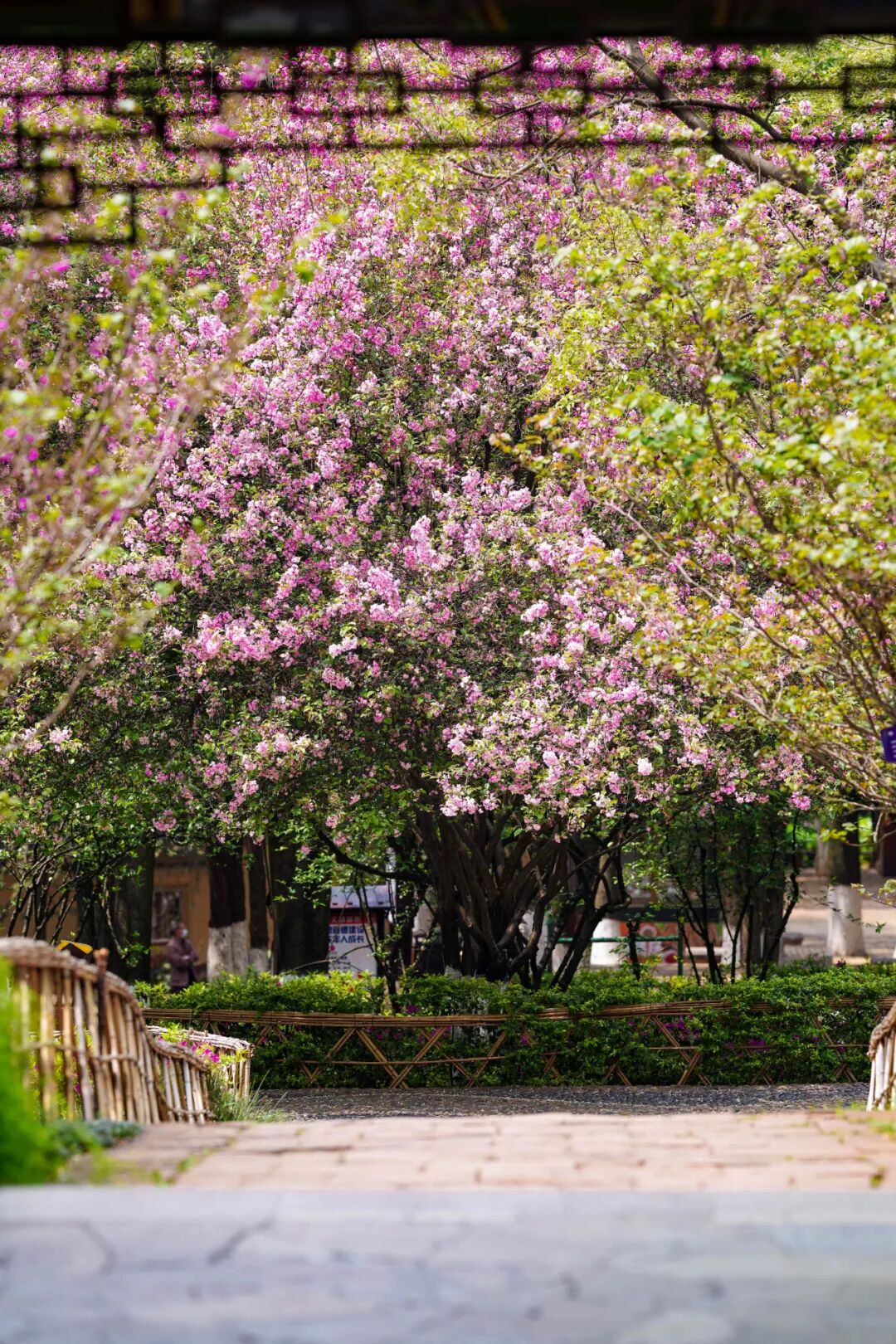小心翼翼地包裹着玫瑰色的海棠花蕾