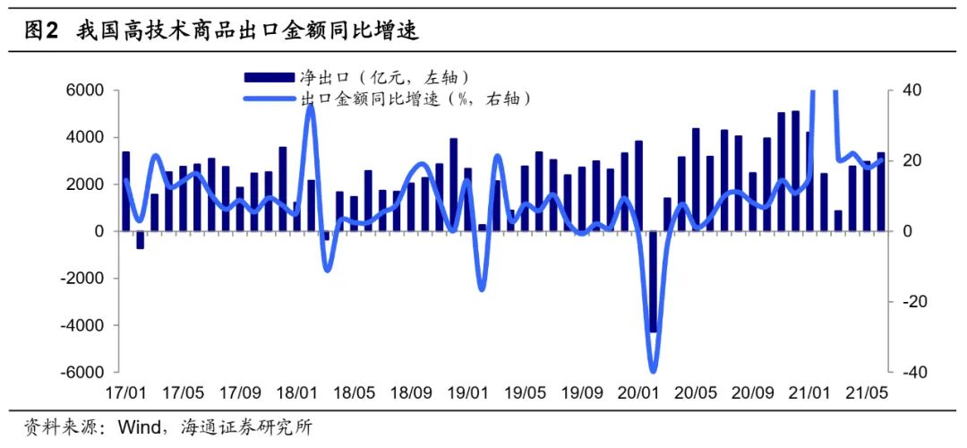 我国已是全球制造业第一大国,强大制造业支撑着我国实现了“上九天揽月、下五洋捉鳖”的夙愿。疫情背景下我国制造和供应链展现韧性,出口成为拉动经济的重要引擎。同时我国抓住了疫情带来的全球制造业产业链重构的机遇,不仅在纺织服装低附加值产品的领域仍保持优势,在高技术产品领域也取得重大突破。在中美科技争端持续的大背景下,我国高端制造业仍在蓬勃向上,体现了我国制造的动能和潜力。