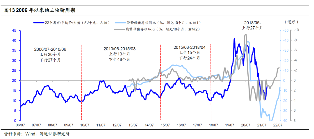 CPI维度:明年Q2附近国内猪价或将见底回升,进而推动CPI上行。从历史规律看,国内CPI与猪肉价格高度相关,当前占CPI权重约2.4%,是影响后者非常重要的分项。猪肉价格的周期波动常被称为猪周期,在需求没有明显变化前提下,猪价波动则由供给变化决定。生猪养殖当中,养殖户的盈利和能繁母猪存栏量是判断猪周期拐点的两大重要指标,养殖户的盈利变动是驱动能繁母猪存栏量自发调整的核心原因,能繁母猪存栏量直接影响着10个月以后的生猪出栏量,进而影响猪肉的价格。